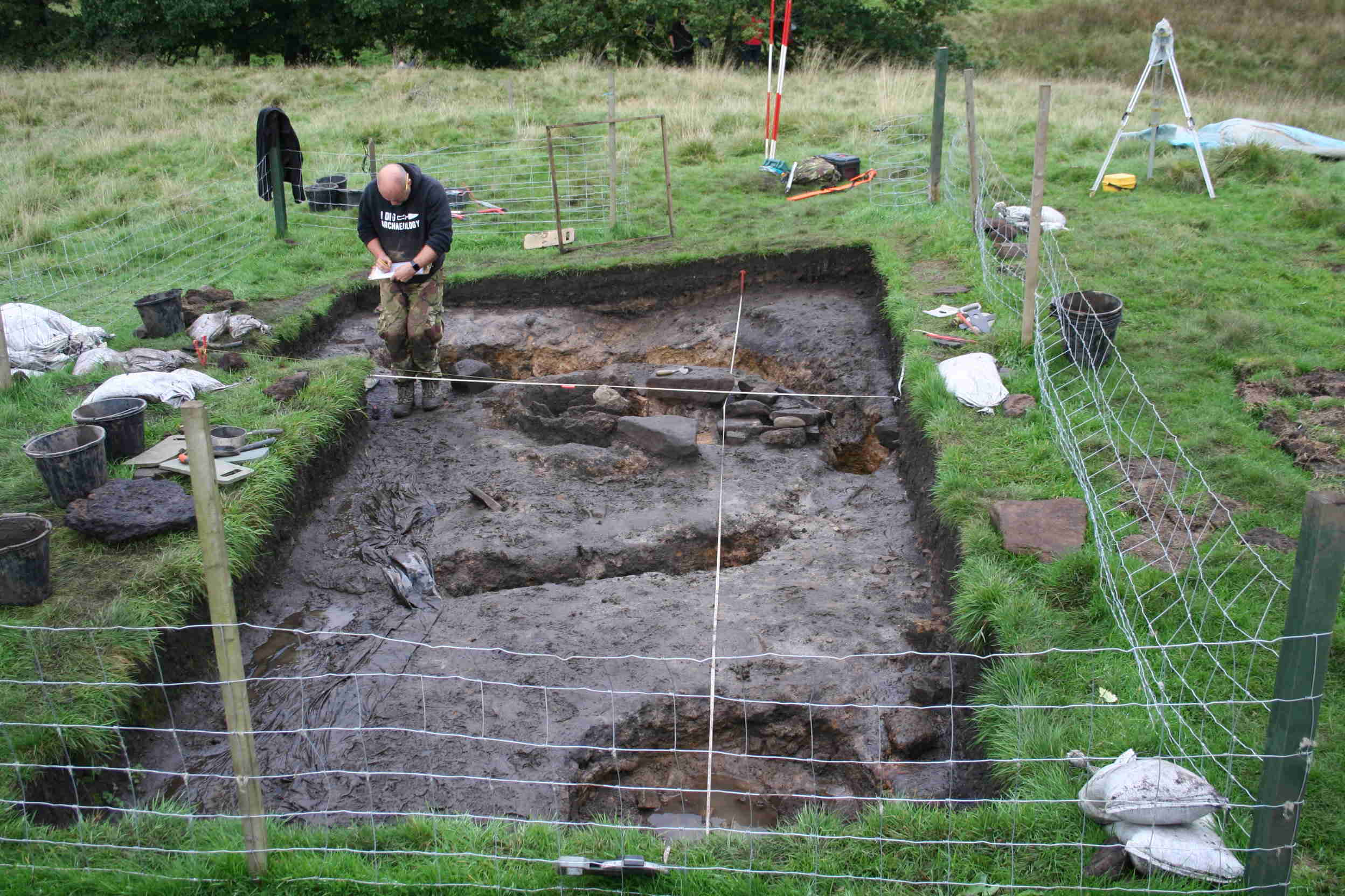 Eastern edge of the trench. Work on this section is particularly interesting as it is in the vicinity of where the furnace bellows would have been positioned. It is hoped that the archaeology of the bellows position will be sufficiently intact to indicate how and where the bellows may have been situated, the possible type and how they were operated. As this area is particularly important the excavation has to be carried out with precision and as a consequence takes time. Phone Aug 26 Photo 4.